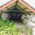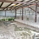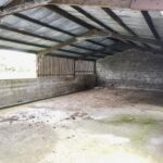 21.04m x 5.11m (69' 0" x 16' 9") Traditional stone construction under a pitched corrugated fibre cement roof with open gable end and steel joist in situ, with a small block-built lean-to off.