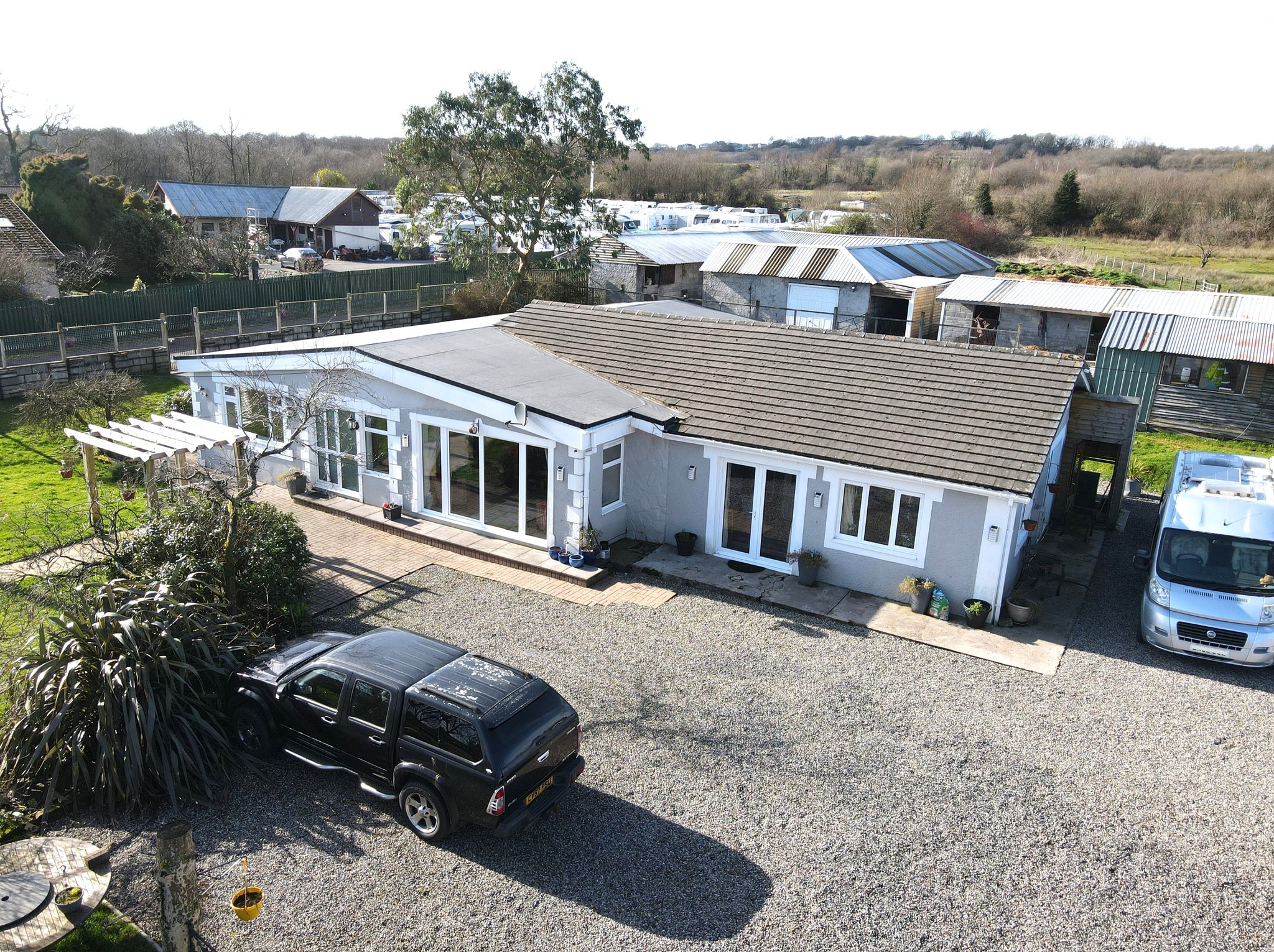 A conveniently located 10.18‑acre equestrian lifestyle property on the edge of Saron, offering excellent access to the A48–M4 corridor and nearby towns. The holding includes a well‑presented extended bungalow with four double bedrooms, two reception rooms, and a kitchen–breakfast room set within landscaped grounds. A nearby courtyard provides a range of equestrian and general‑purpose outbuildings, offering extensive facilities and versatile use options.
