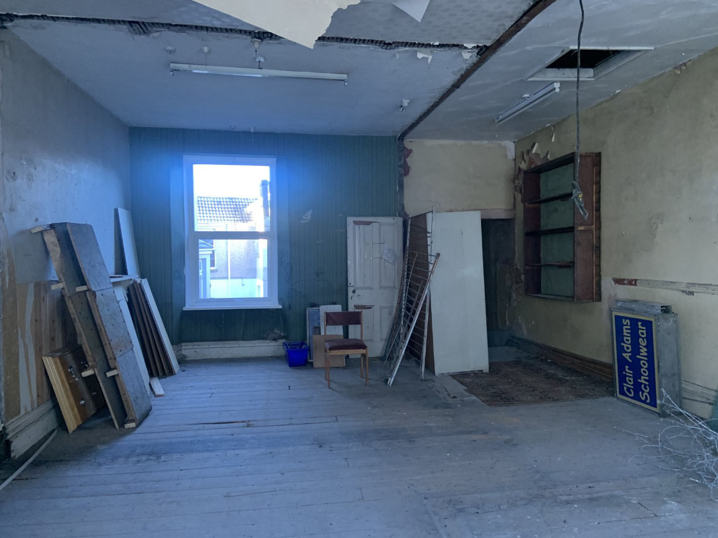 A two storey mid-terrace building comprising ground floor retail with first floor ancillary accommodation in need of refurbishment.