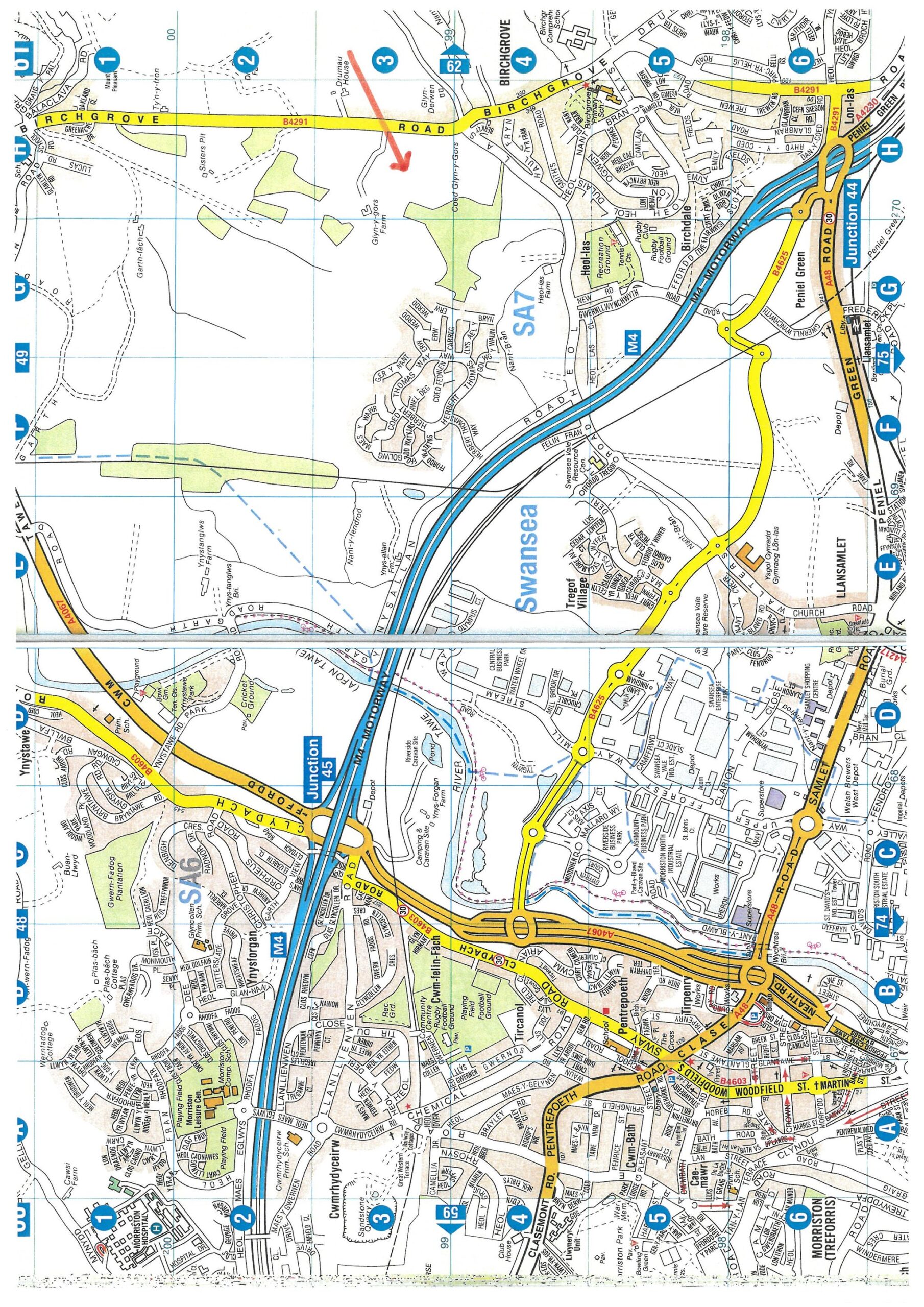 From Junction 44 M4 motorway take the B4291 road through Birchgrove and the entrance to the farm is sign posted Glyngors onto farm road and take first left into Rosedale Farm.