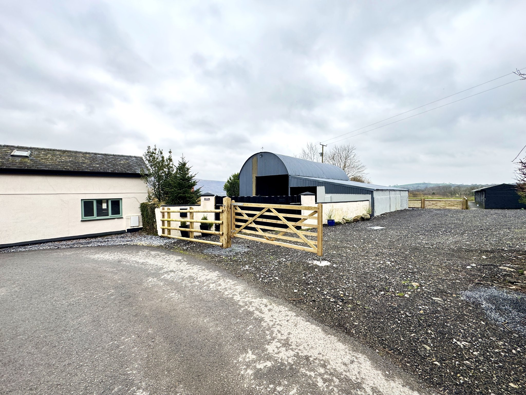 The property is approached off a private shared driveway via a set of double timber gates, opening onto a large gravel driveway / parking area with ample parking for multiple vehicles, horse trailer and lorries with direct access to the barn, stable and field. A separate gate leads into the grounds of the barn / cottage, with further driveway and enclosed courtyard garden.