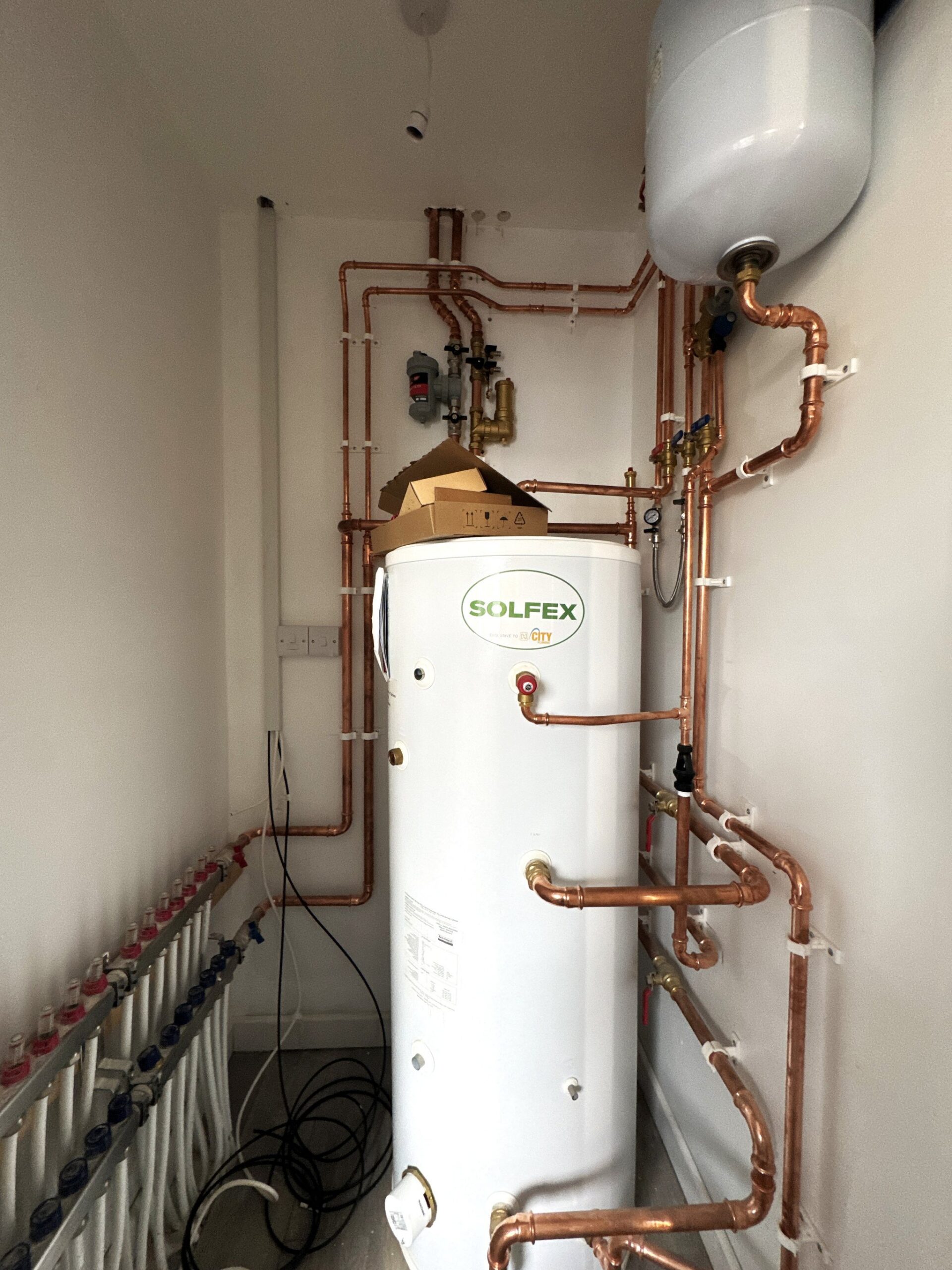 Air source unit externally for heating/ hot water.