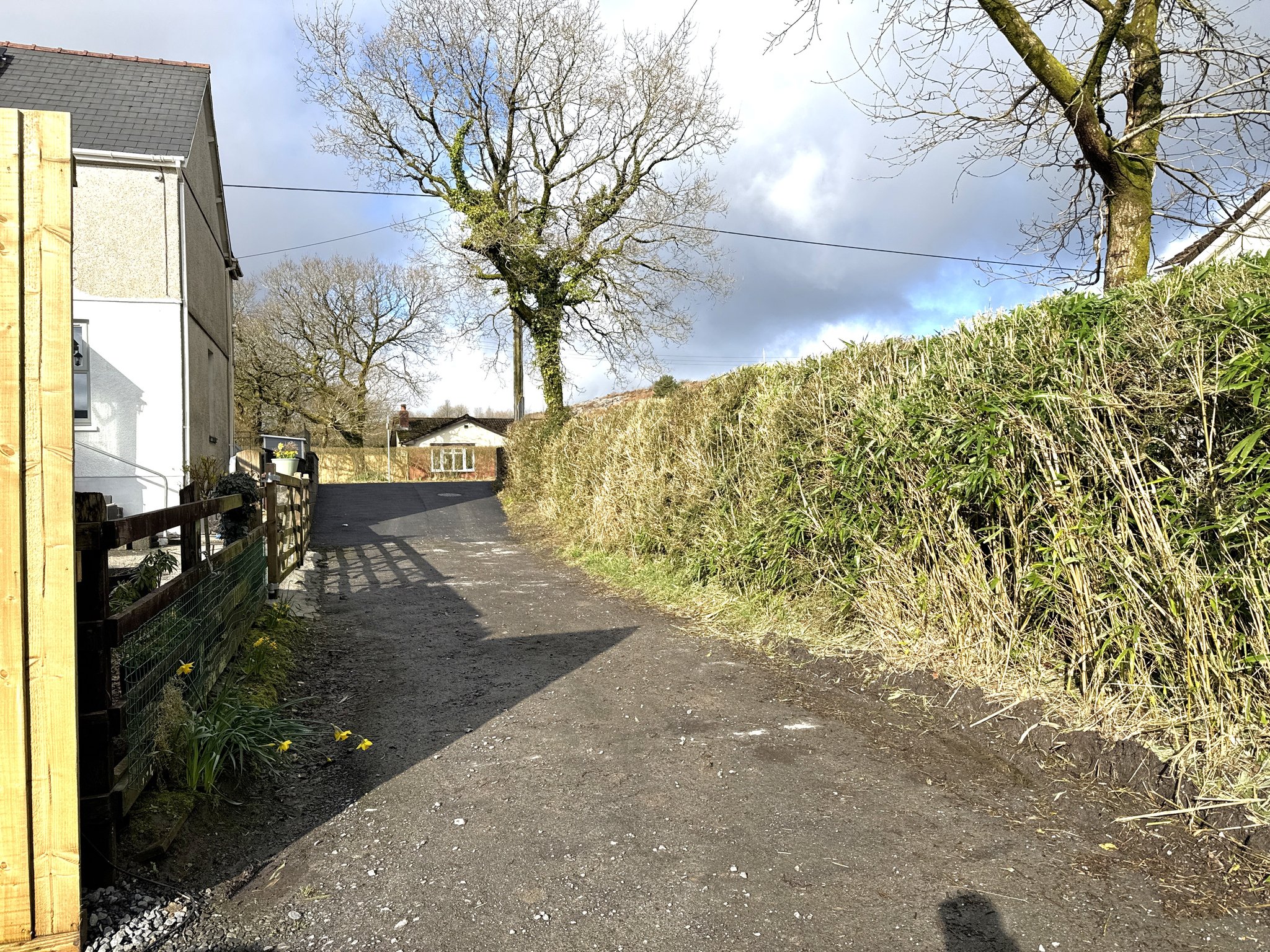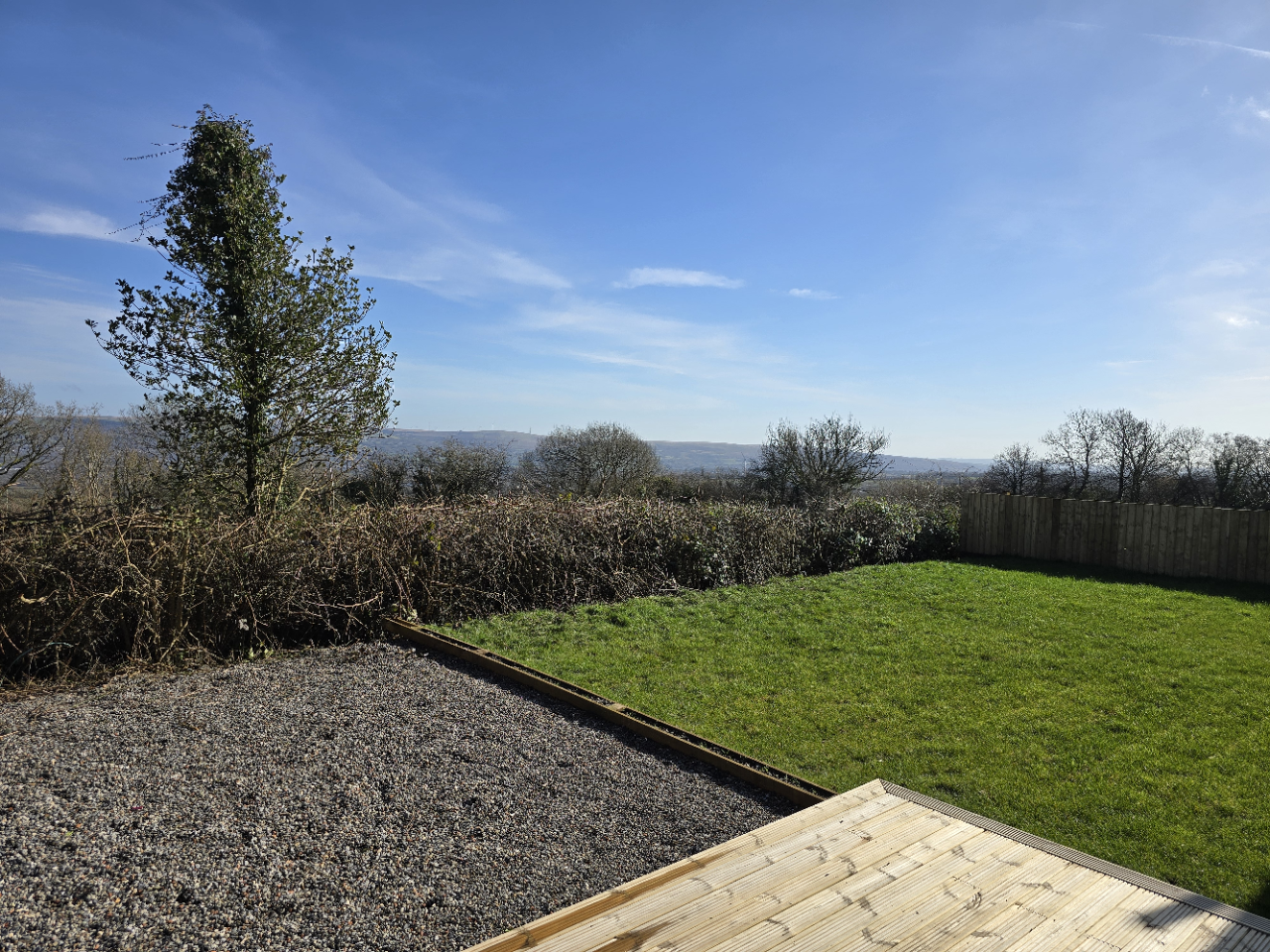 This charming home features three generously sized bedrooms, including a master with ensuite bathroom. Tastefully styled in neutral tones, it offers a warm and inviting atmosphere throughout. Set back from the main road, the property sits on a spacious private plot with an extensive driveway ready for your personal touch. The rear garden blends decking and lawn, providing breathtaking views of the surrounding countryside and mountains. Accessed via a quiet private lane, this home ensures both privacy and exclusivity.