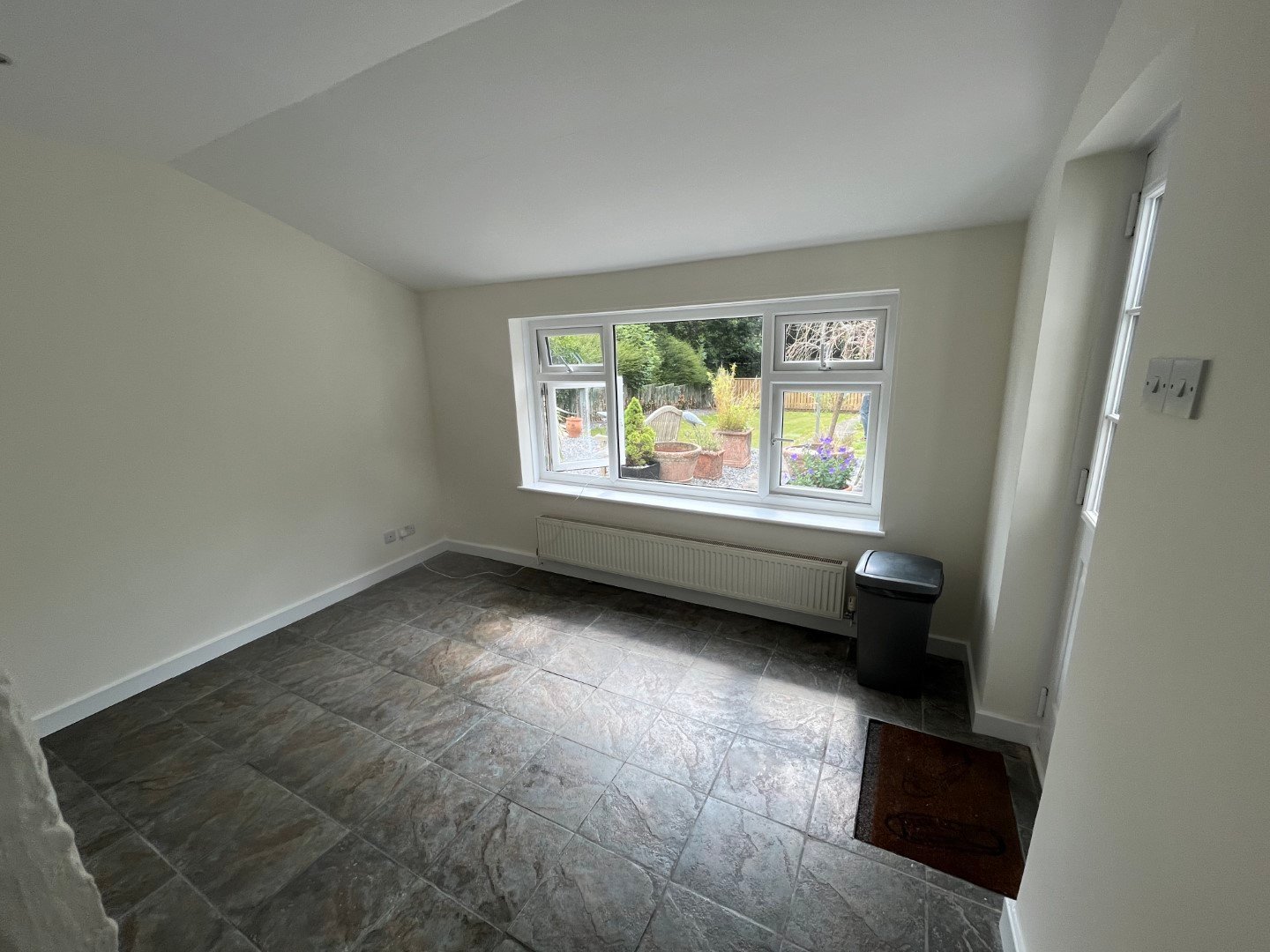 Front lawn garden with side driveway parking for several vehicles and well-maintained sunny south facing enclosed rear garden laid to lawn and seating areas.