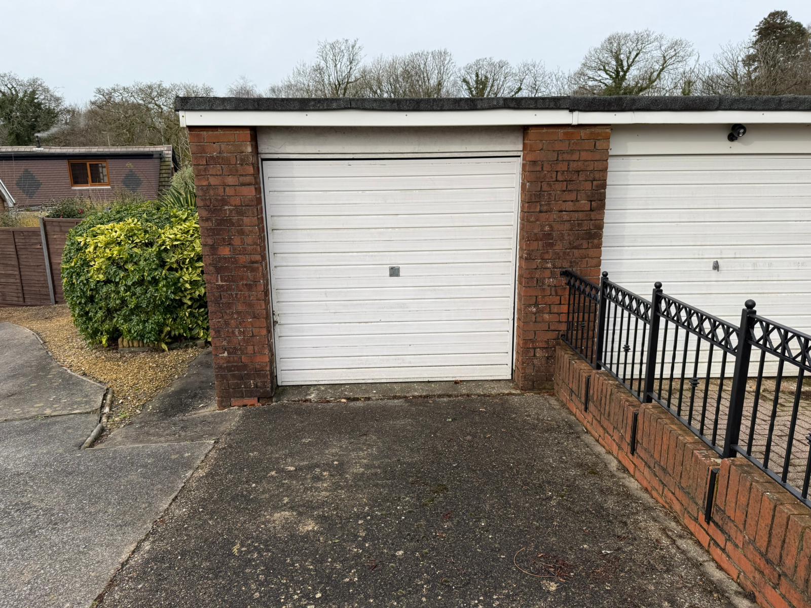 To rear of garage with sectional garden shed, greenhouse and timber garden store. Cotswold stoned area to side fronting Hartfield Close.