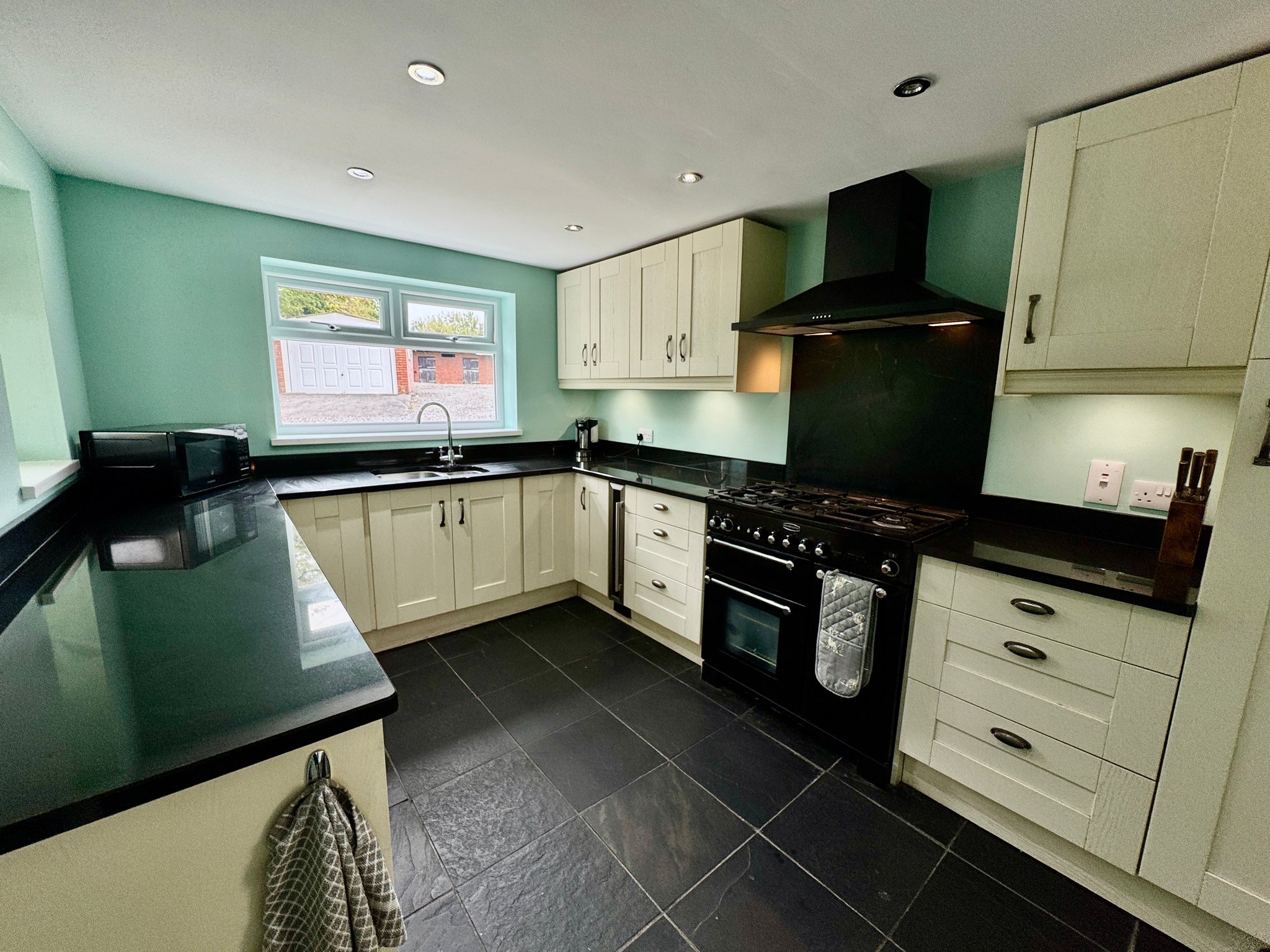 2.83m x 6.21m (9' 3" x 20' 4") Fitted base and wall units. One and half stainless steel sink unit with mixer tap. Granite Worktops. Gas Rangemaster cooker (5 rings) with extractor hood above. Dishwasher. Wine cooler. Pantry cupboard. Drawers. Slate tile effect floor with under floor heating. Window to rear. Window to side