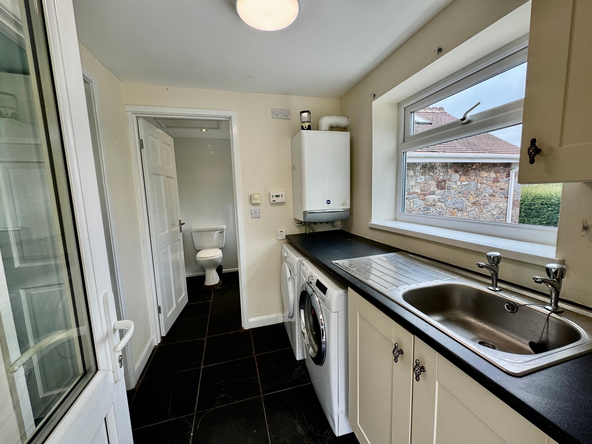 1.86m x 2.11m (6' 1" x 6' 11") Window to side. Door to rear. Plumbing for washing machine/tumble dryer. Base unit with stainless steel sink unit and worktop. Baxi Propane wall mounted boiler. Central heating control panel. Slate tile floor
