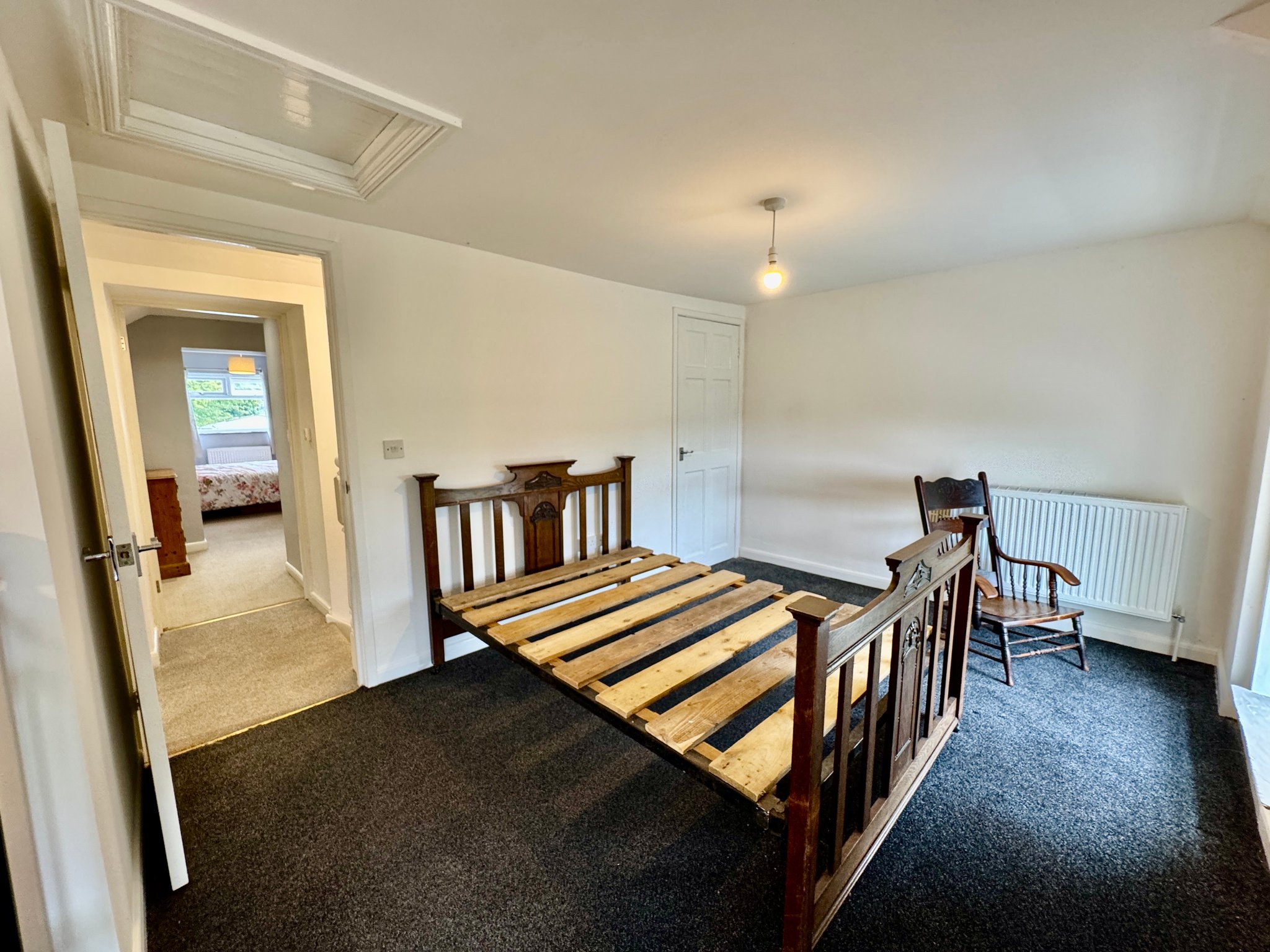 2.91m x 6.17m (9' 7" x 20' 3") Window to front. Carpet floor. Storage cupboard. Attic hatch