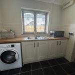 Base units with plumbing for washing machine and gas boiler. Door to side and tiled flooring.