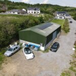 Built of a steel portal framed construction under a pitched box profile sheeted roof with concrete block walls elevations and roller shutter door access and pedestrian side door, extending to 18.06m x 8.66m (59' 3" x 28' 5"). Power and electricity connection with EV charging points. Water connection outside.